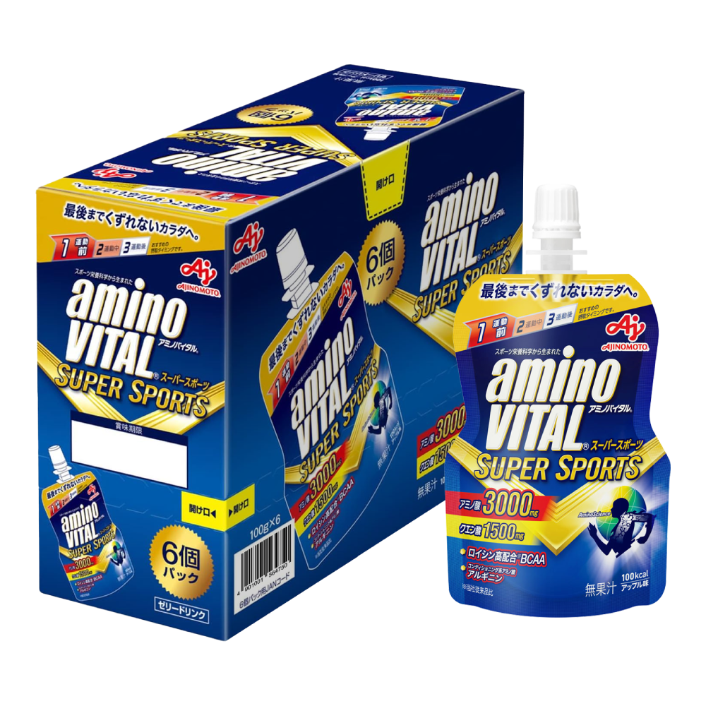 日本味之素推出: 結合能量、必需胺基酸(含BCAA精胺酸等)、檸檬酸三大關鍵元素的「SUPER SPORTS® 胺基酸運動機能飲」補充能量與體力且活力充沛,非常適合每日補充。運動前補充,可快速、輕鬆、美味地補充胺基酸及能量,維持體能充沛;運動中補充,保持能量不中斷,維持表現不掉速!