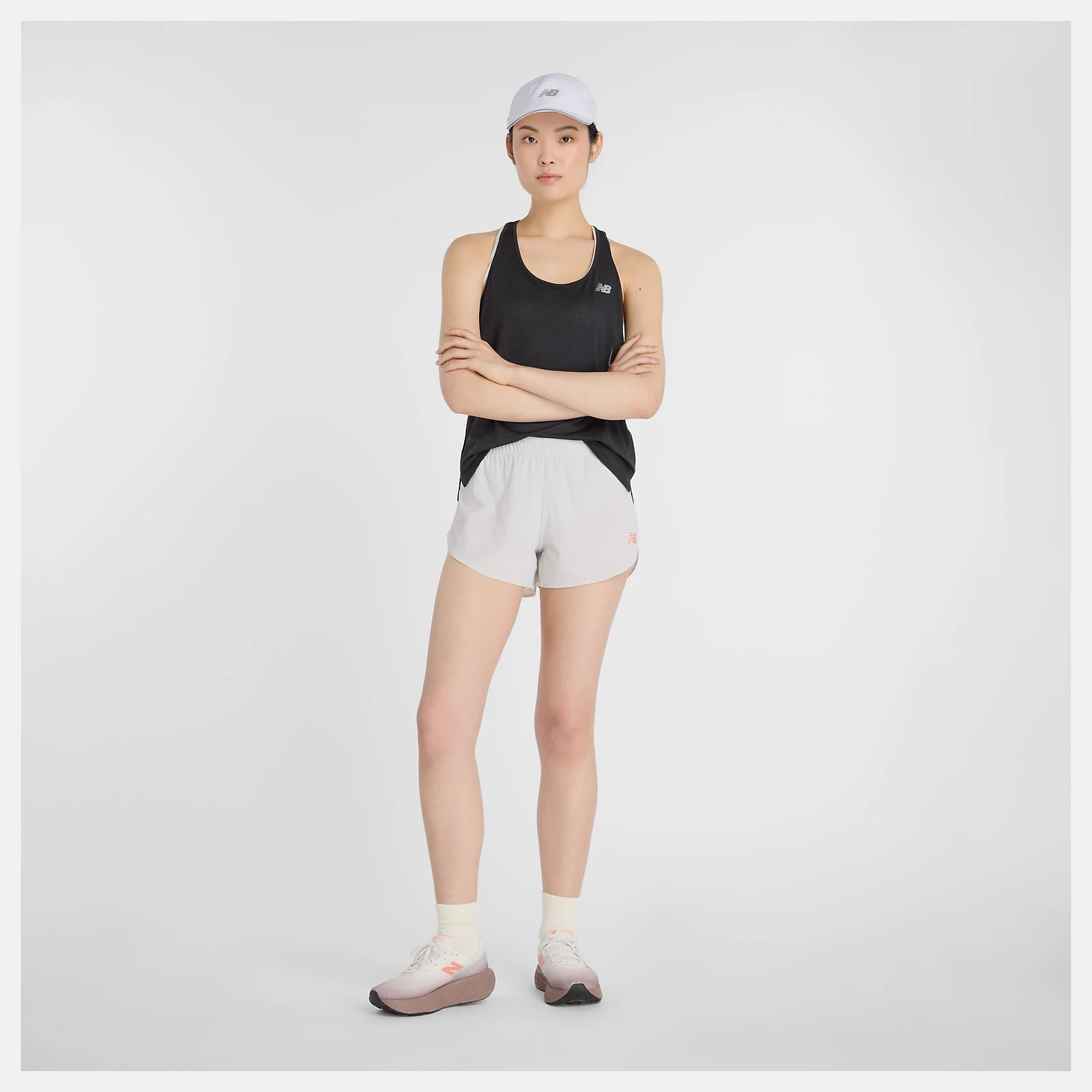 New Balance 慢跑3吋短褲(有內襯) 灰白 女