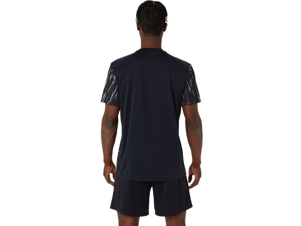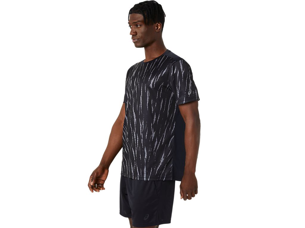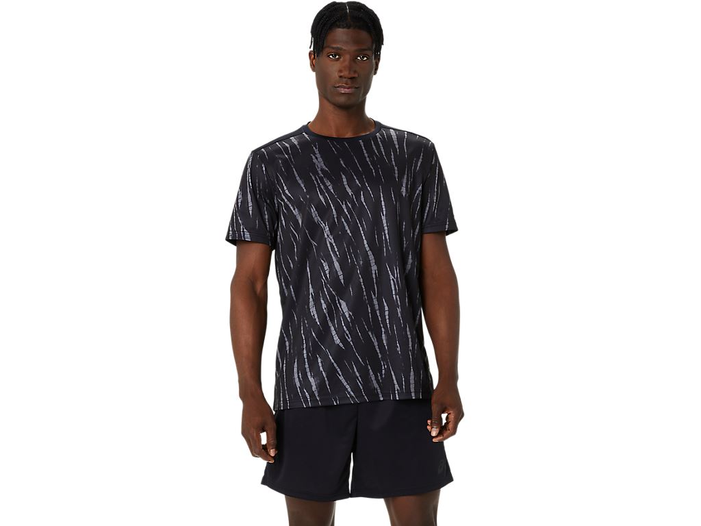 ASICS 短袖上衣 黑花紋 男