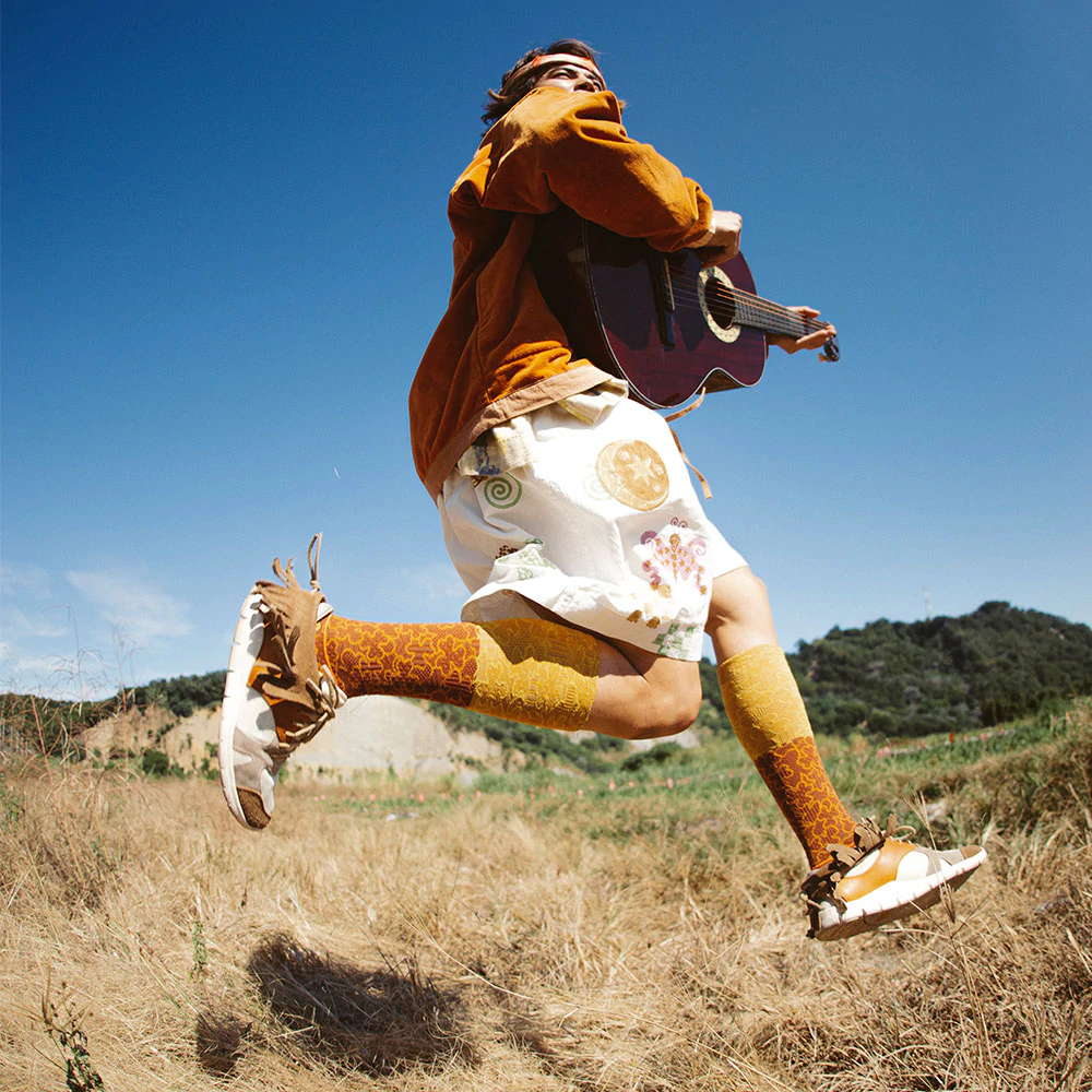 襪子翻轉後,用對比色的手法與主色系相呼應,意思是指雖然不一定每個種族都能夠認同彼此,但相互尊重、包容才是人類進化成真文明的根本。