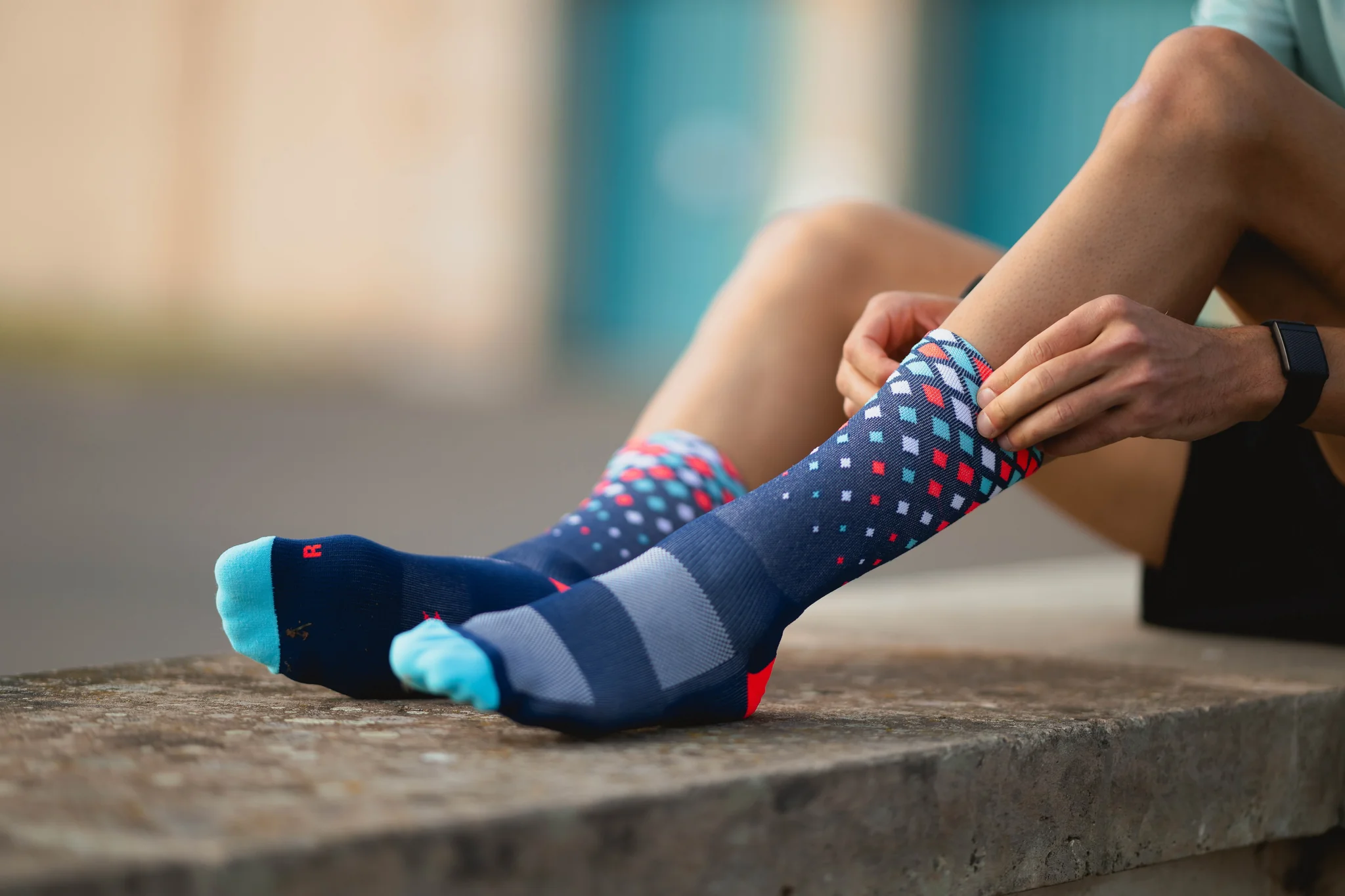 INCYLENCE 跑步運動機能襪 Crystals Navy Cyan Inferno