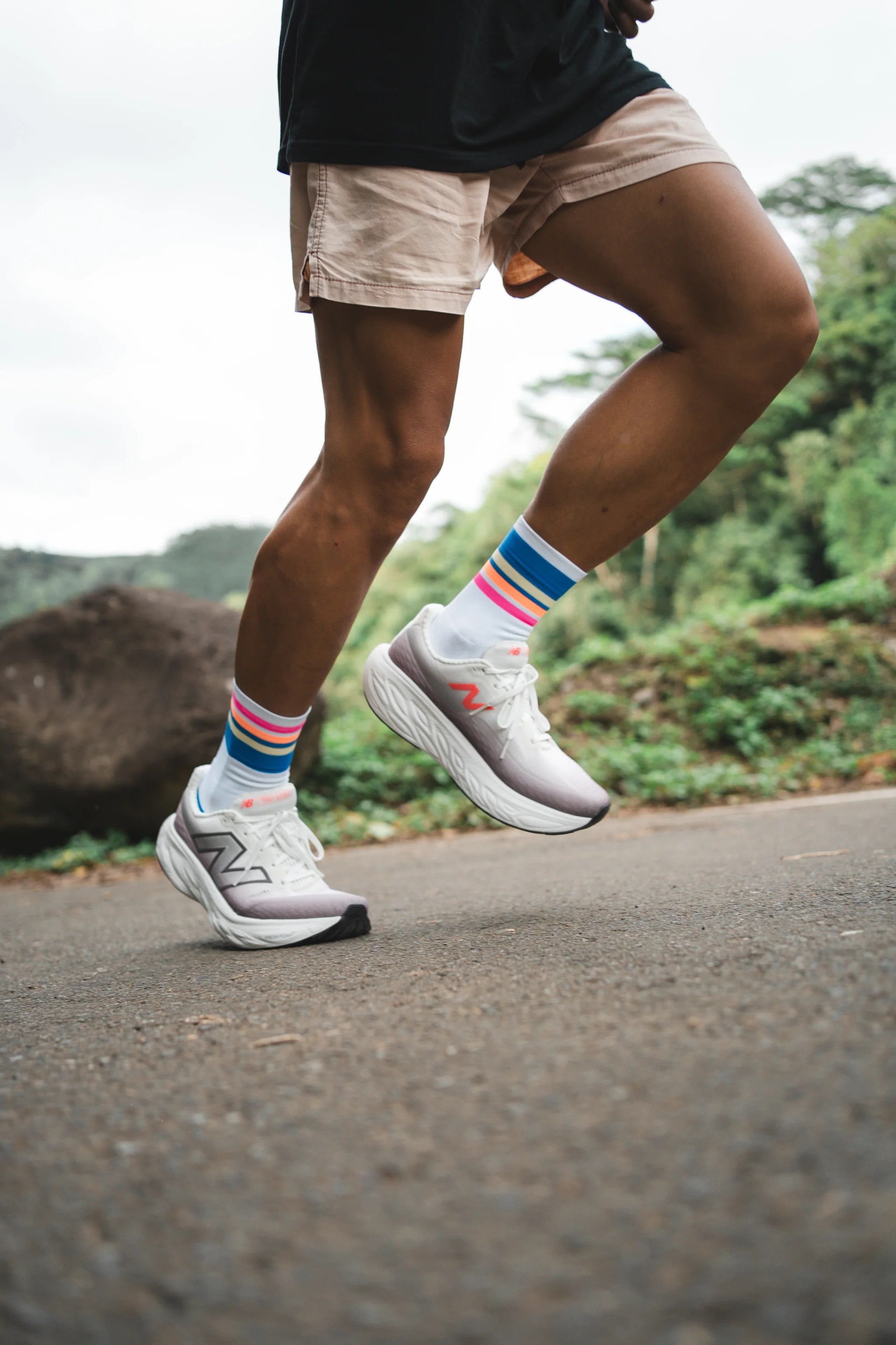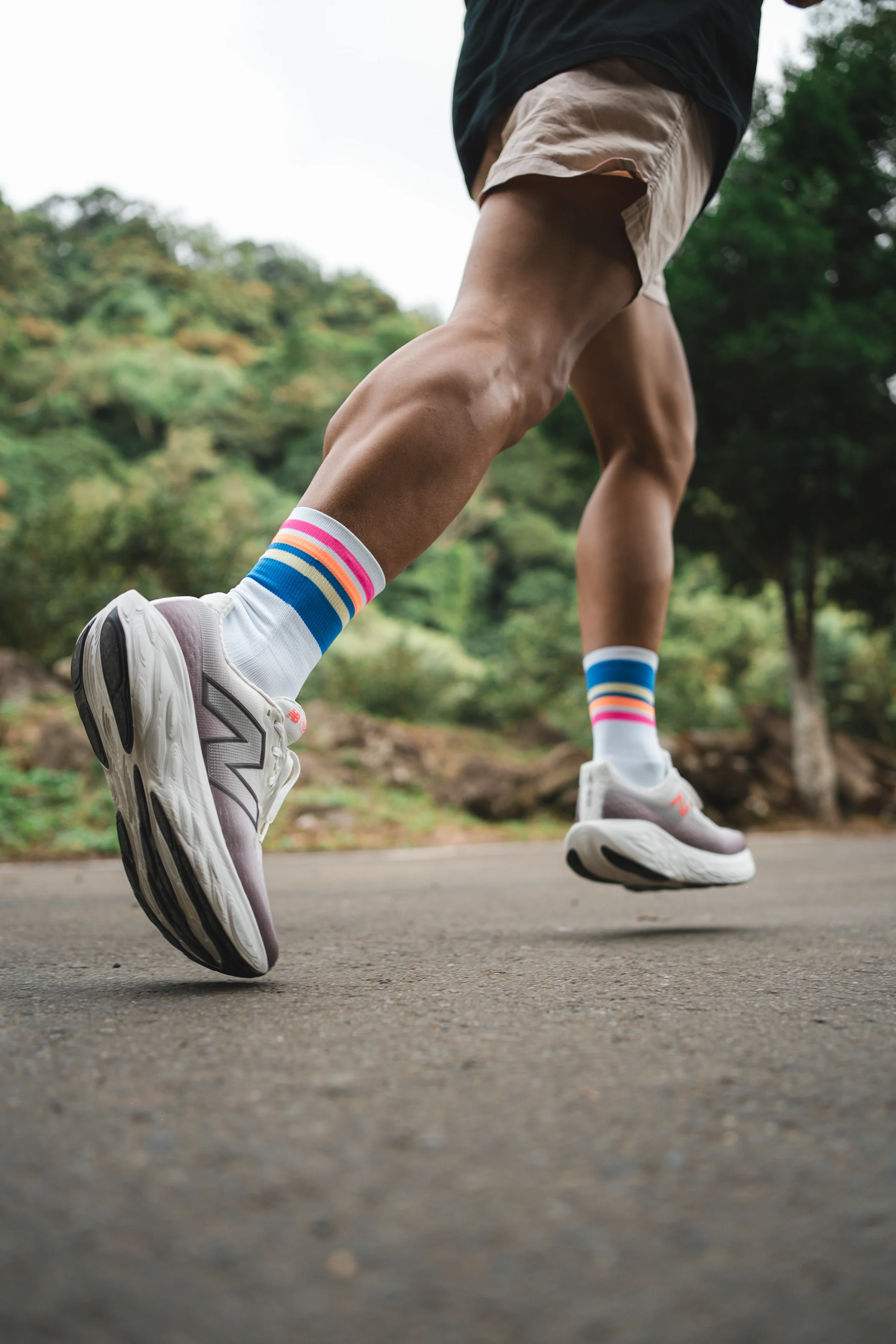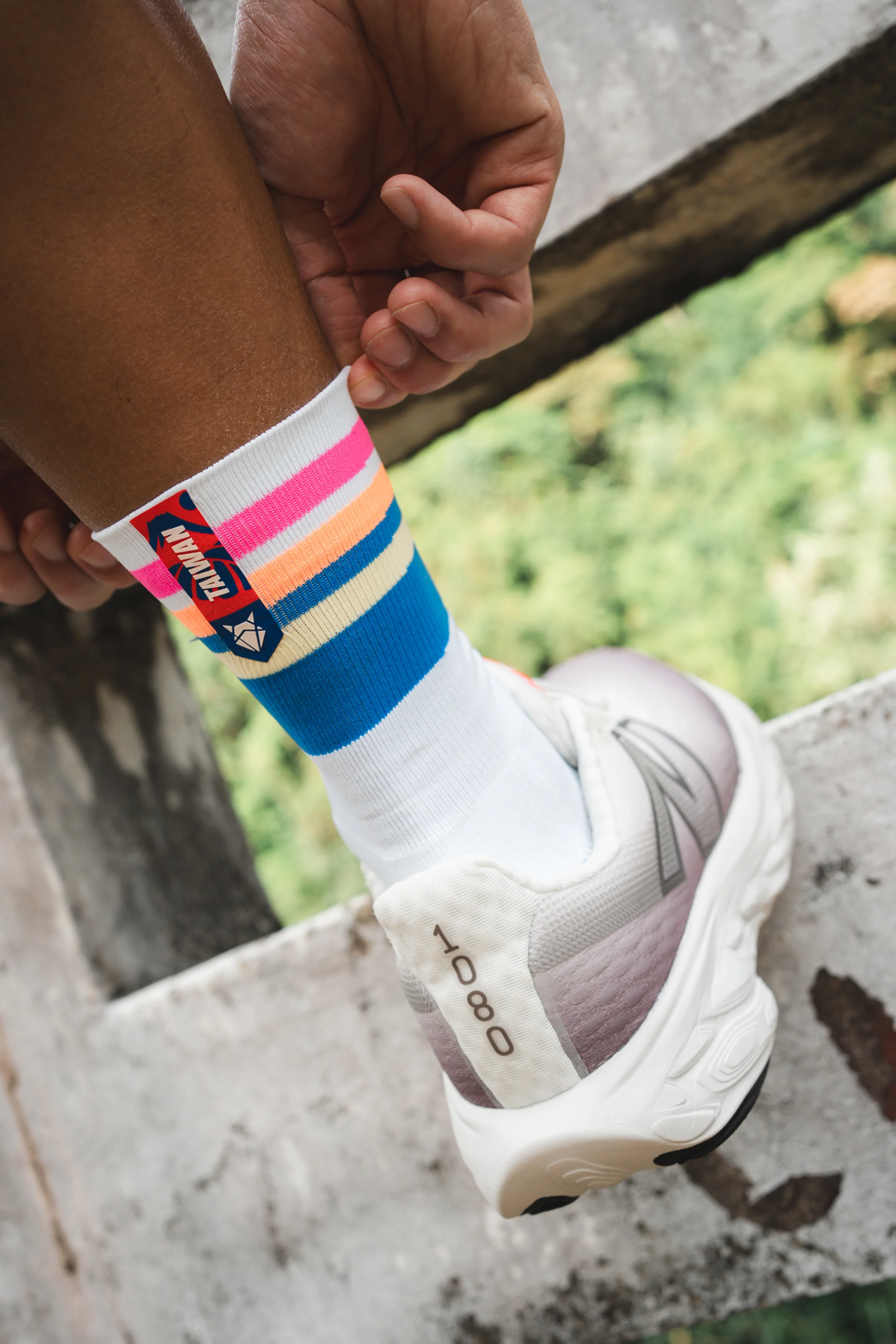 襪標上的圖形靈感來自台灣的地景與跑者視角。
