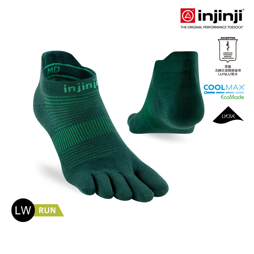 INJINJI Run輕量吸排五趾隱形襪NX 翡翠綠
