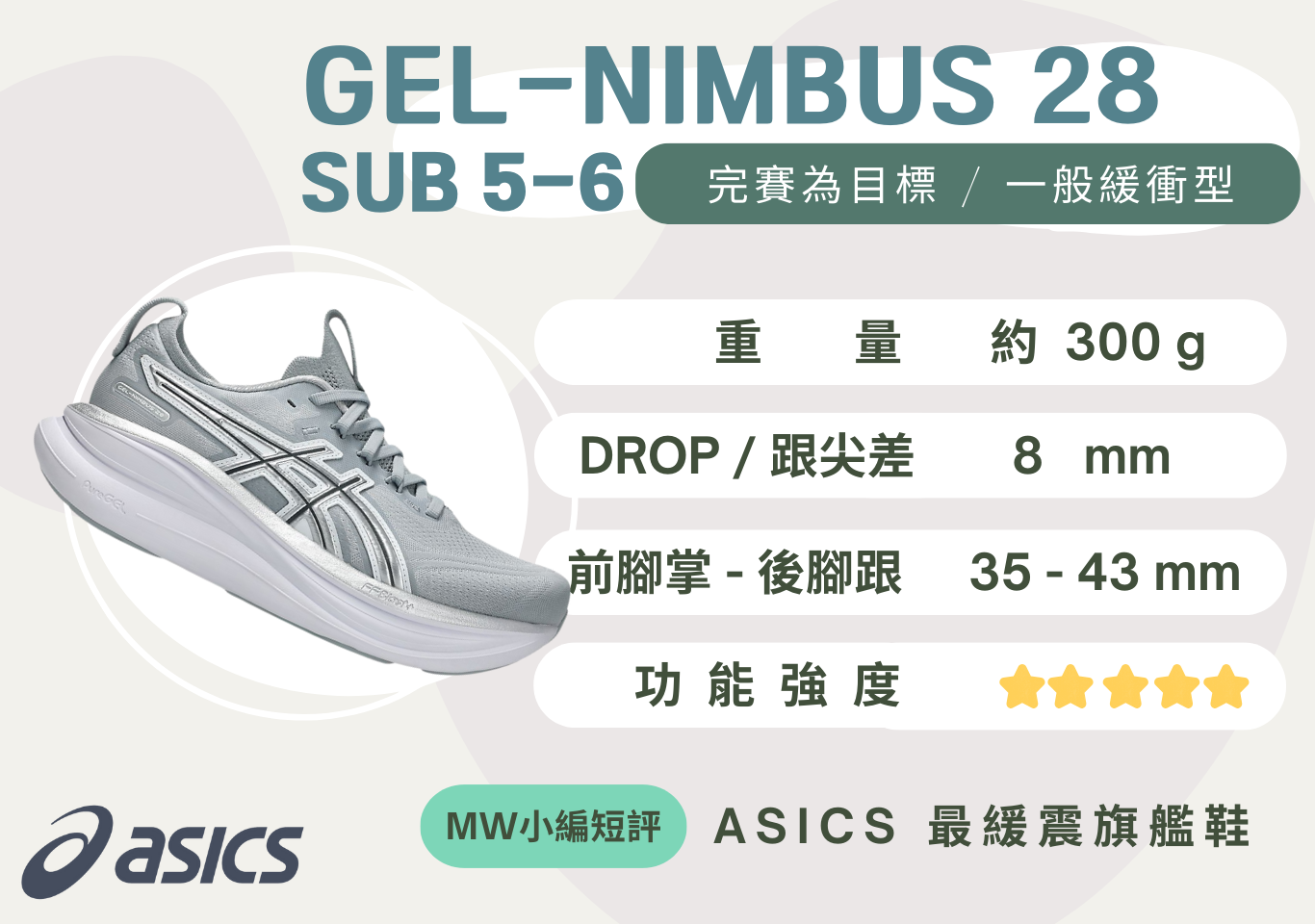 ★ 後跟內置式PureGEL亞瑟膠,打造出輕盈柔軟的舒適腳感。